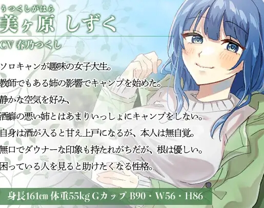 この作品はダウナー作品で、ソロキャンプに来ていた女性とイチャイチャしちゃう、