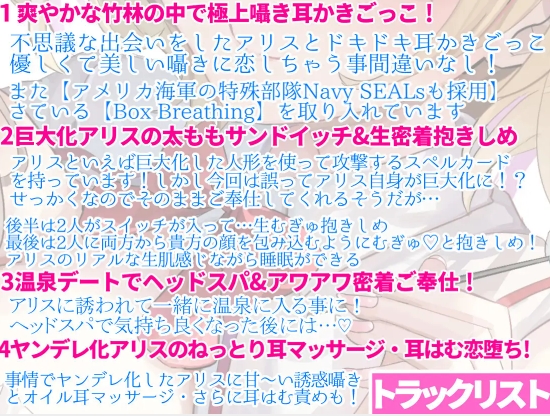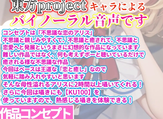 不思議と癒されるアリスの愛情たっぷり囁きと7種のご奉仕公開日:2025年3月12日ASMR(ボイス) 【サンプルボイスを聞いて】囁きにもKU100を使用しているというこで期待できます!とっても良かったです。アリスマーガトロイドによる王道な癒しASMRですが、ボリューム満点、文句なしの作品です。夜寝る前に聞いてみてください。【作品の詳細はコチラから】関連記事ささやきラジオ】菜月のSecret_Talk魔法少女のヒミツ茶道部の後輩と部活動デート~梢といっしょに包容力たっぷり甘々お姉さんの耳かきリフレ【耳吹き・列車音・薪パチ】いやでんっ! 〜癒やしの特別寝台列車ママといっしょにおねんねしましょ 〜元アイドルママ編投稿ナビゲーションセロ弾きのゴーシュメ○ガキが近くで100~0までカウントダウン